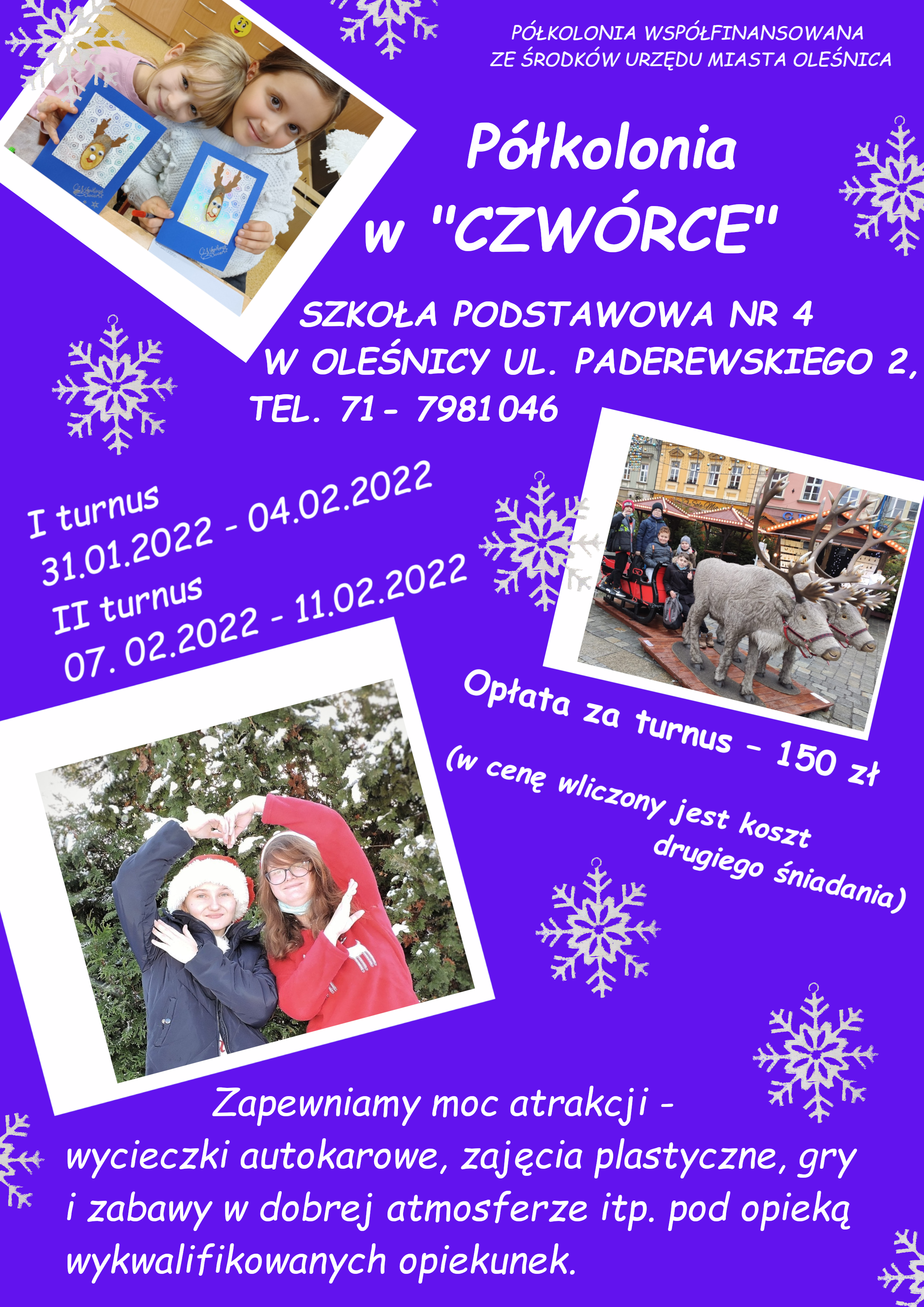 5 Stycznia 2022Szkoła Podstawowa nr 4 im. Romana Podoskiego w Oleśnicy zaprasza na półkolonie: