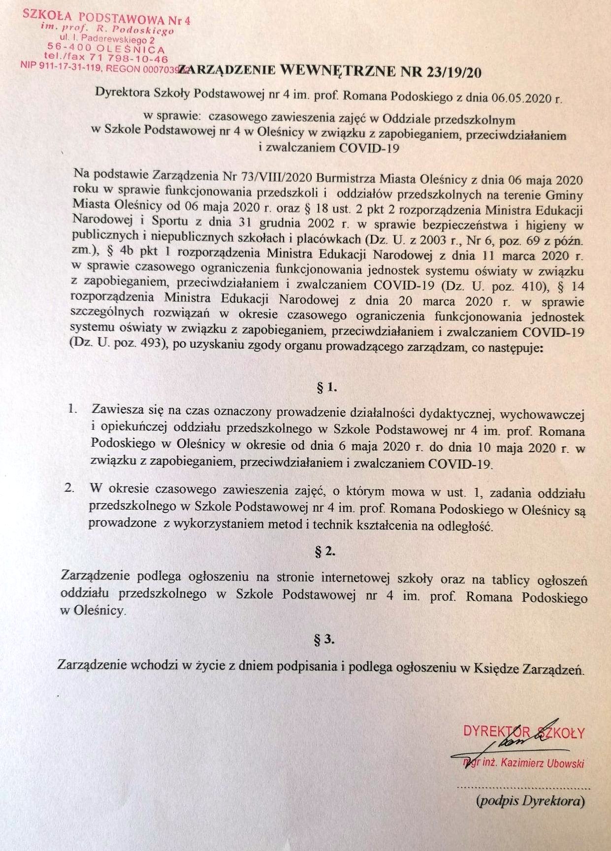7 Maja 2020W załączniku znajduje się zarządzenie Dyrektora Szkoły